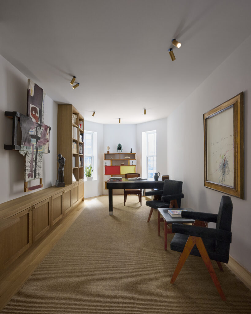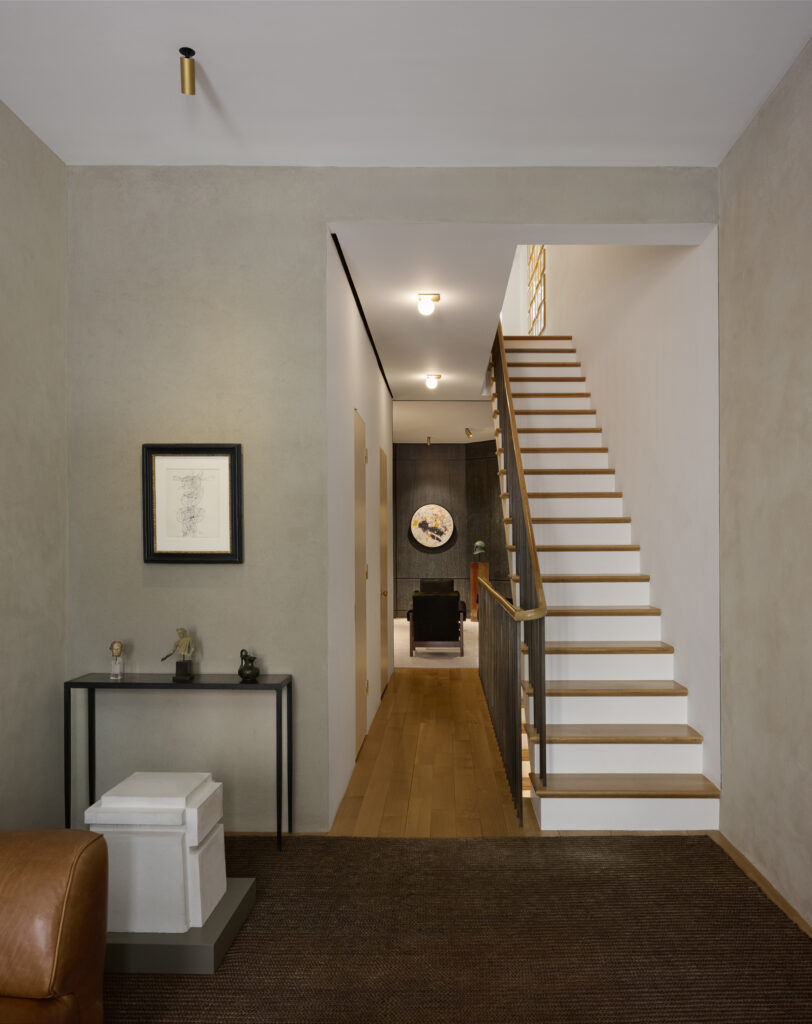 The new townhouse is located on Manhattan’s Upper East Side in a narrow, five-story 19th-century structure, once home to a nephew of J.P. Morgan. The building’s compact footprint and elongated layout presented challenges with circulation and natural light, addressed through strategic architectural and interior interventions.
