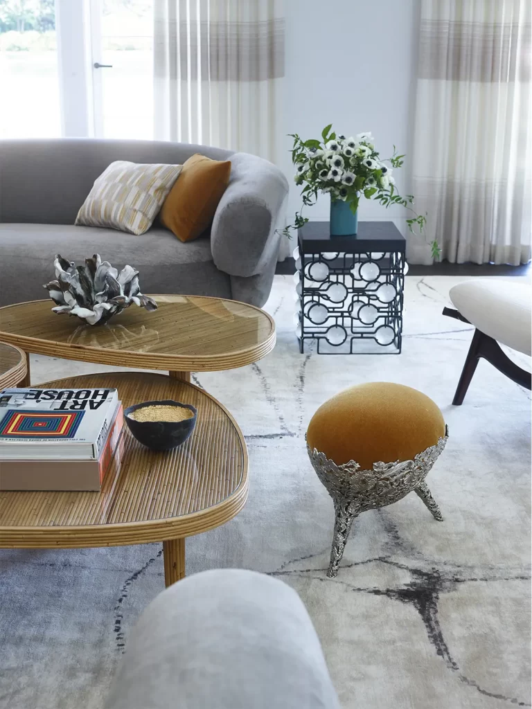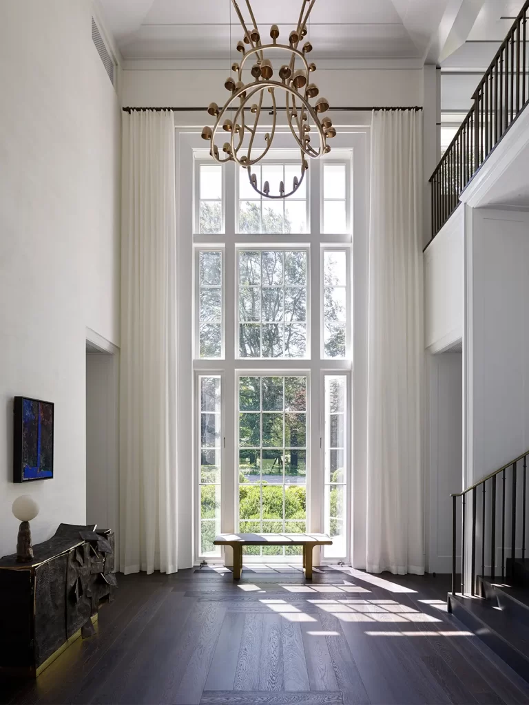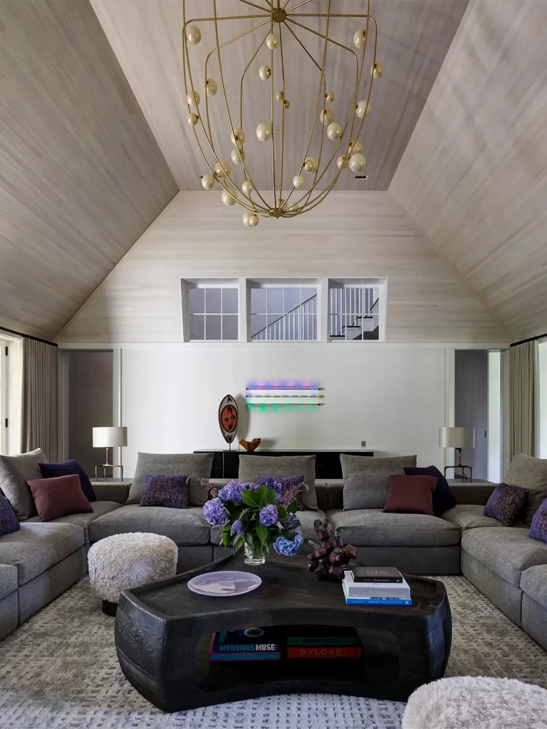 The six-bedroom home balances grandeur with warmth, tradition with bold gestures. Its Shingle Style exterior contrasts with interiors defined by clean lines and spatial clarity. Large, light-filled spaces accommodate both daily family life and the display of contemporary art, assembled with the help of art adviser Erica Samuels. The interiors reflect a desire for elegance and ease, welcoming conversation, creativity, and relaxation.