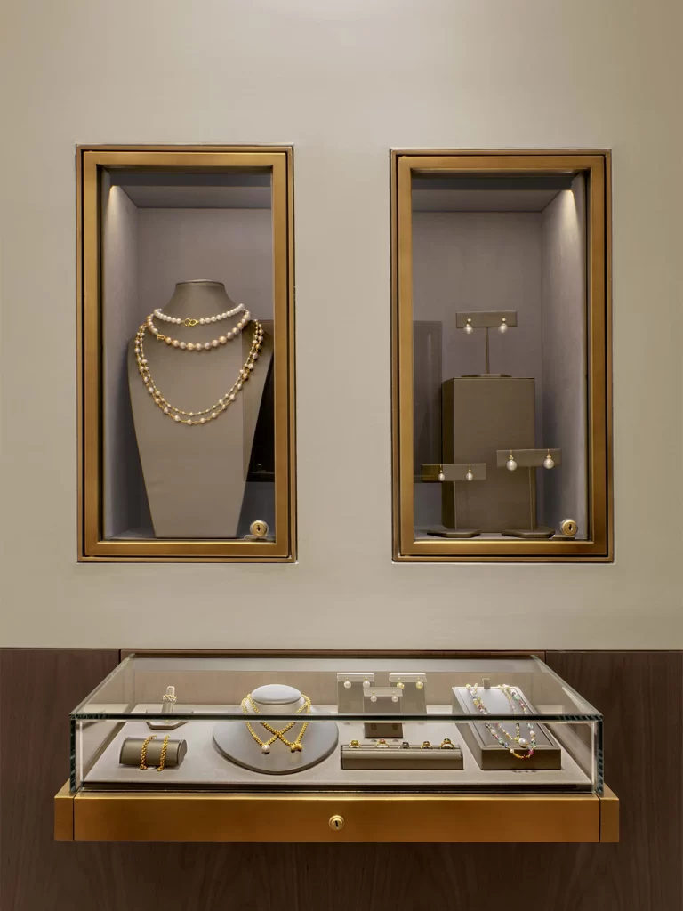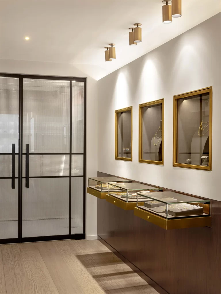 In keeping with Reinstein Ross’s elegant and sophisticated spirit, D’Apostrophe conceived the 2,884 sq.ft. ground and second floors of a townhouse on 67th Street into the new RR flagship store. D’Apostrophe aimed to create a warm, home-like environment where one can feel relaxed while admiring timeless pieces expertly crafted on the premises by highly skilled goldsmiths